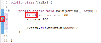 상수(constatnt)는 한 번만 값을 저장하는 변수final int a = 0; 처럼 앞에 final을 붙인다