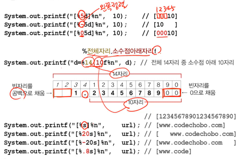 f외에도 앞에 숫자를 적어주면 공백이나 0을 채워 자리수를 맞출 수 있다