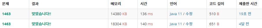 실제로 재귀 메서드를 이용하는 게 메모리와 시간 두 측면에서 더 낫다